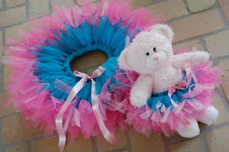 Et tyll skørt til bamse uden ekstra puf (her på billedet vil det sige uden det pink tyll, men blot det turkise) koster 139,00