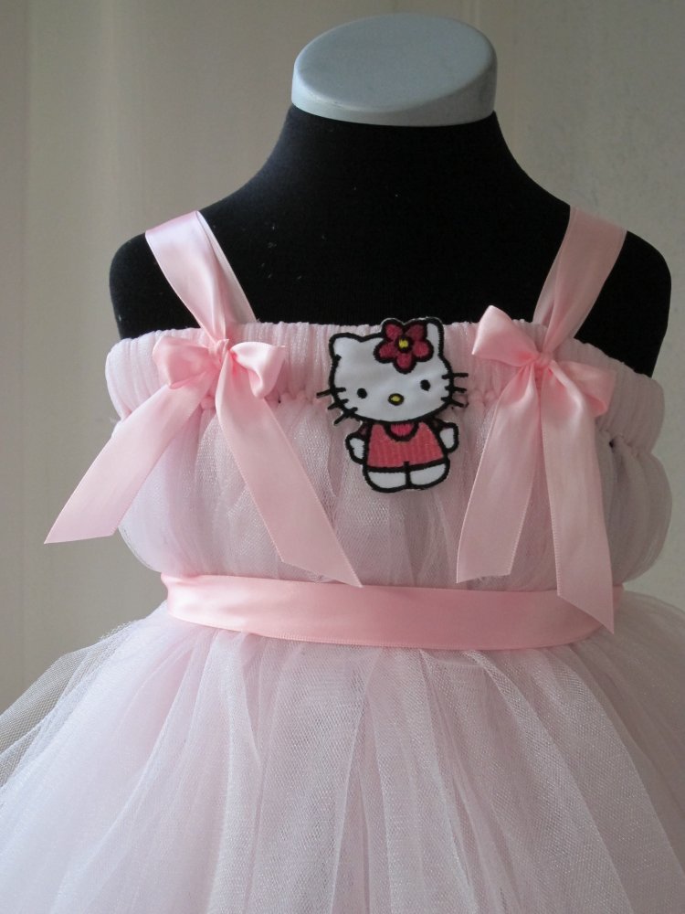 Fin lyserød kort tyl kjole med Hello Kitty mærke på fronten- kan variere lidt i forhold til foto.