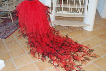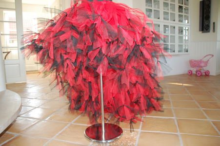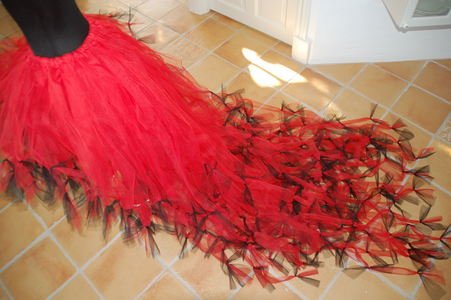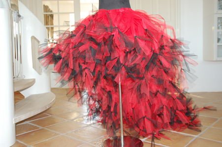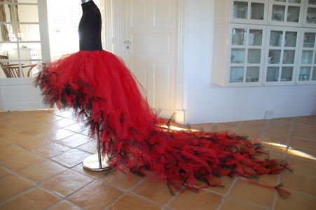 Smukt langt skørt i rød og sort, kan dog laves præcis i de farver du ønsker. Prisen afhænger af str. send en mail på m.e@os.dk for pris.