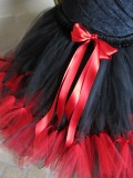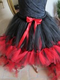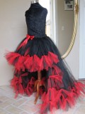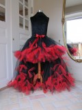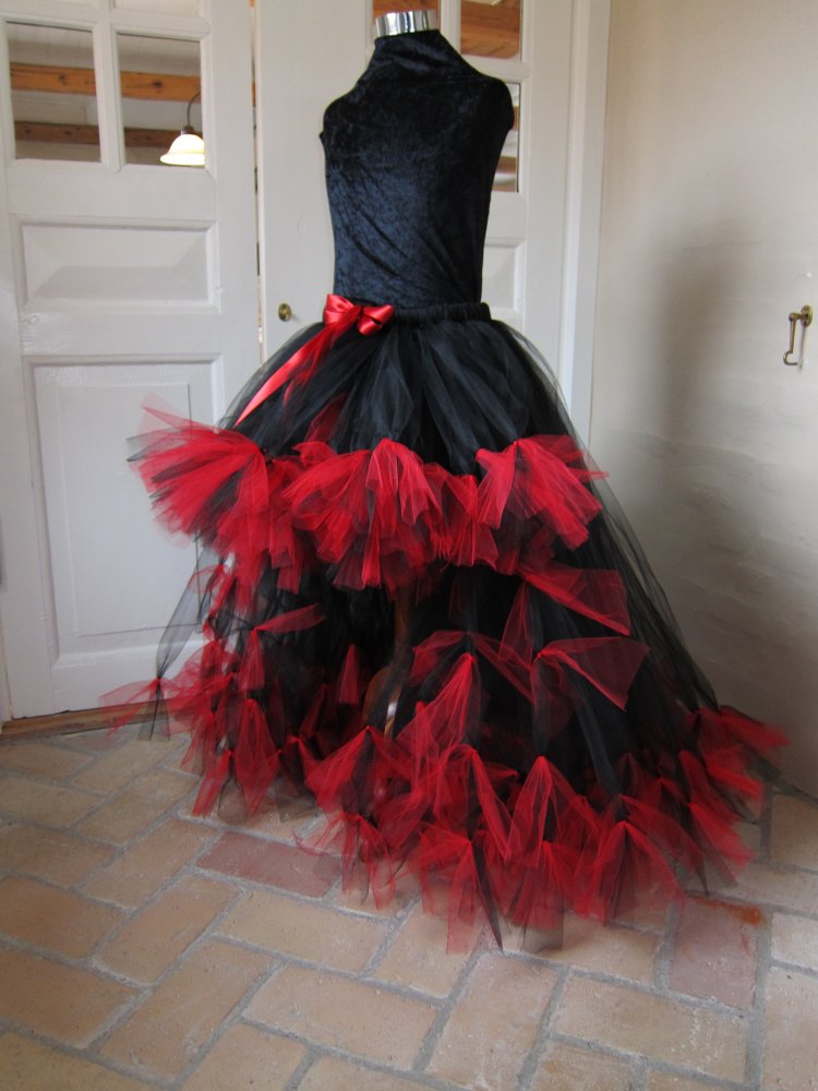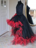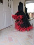 Smukt langt skørt i sort med rødt puf. Dette er uden slæb.Kan naturligvis laves i alle størrelser og alle farver. Prisen afhænger af str, send en mail på m.e@os.dk for pris.