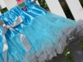 Skørterne er uanset str forholdsmæssigt lavet af lige meget satin og tyl- dog er de mindste skørter udseensmæssigt mere fluffy end voksen skørterne- jo længere skørterne bliver, jo mere "flader" de ud. Dog er ALLE skørterne meget meget fyldige.