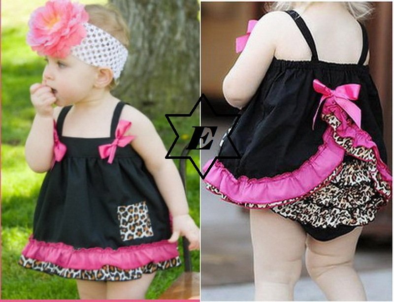 Medfølger: Bluse/kjole, bukser og sødt hårbånd med stor blomst