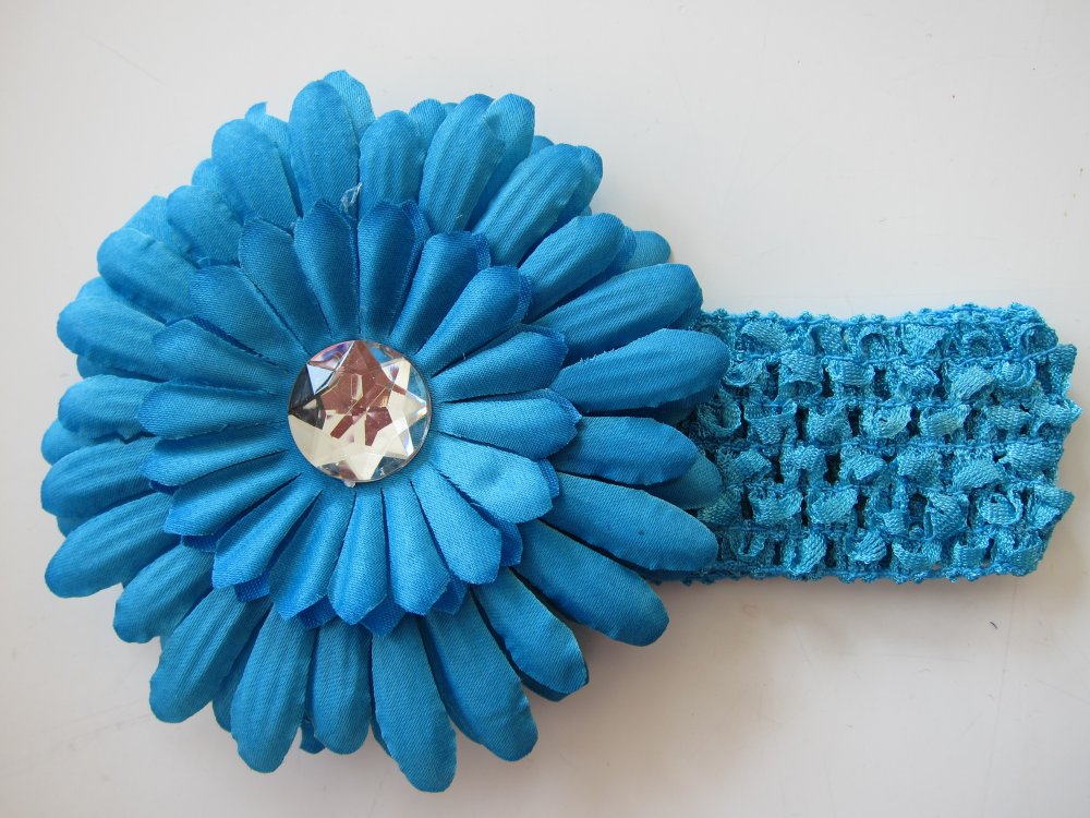Hårbånd i elastik med tilhørende blomst. Fåes i mange farver.