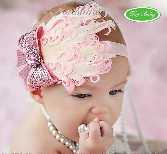 Smukke hårbånd med fjer og smukke detaljer- passer både babyer, børn og voksne da hårbåndet er i elastik.